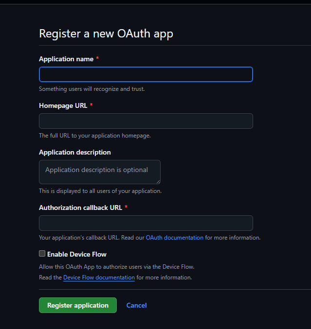 Authorization callback URL: 同 Homepage URL
